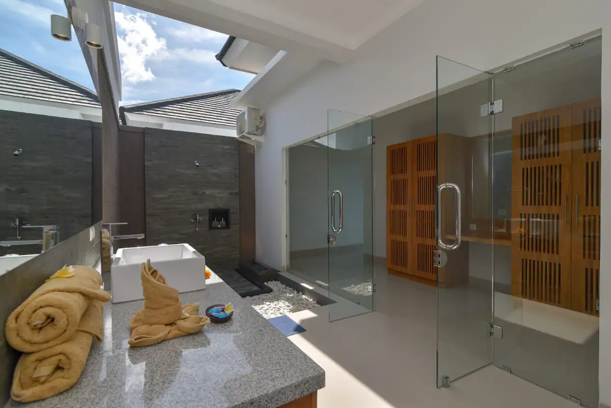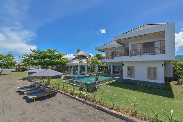 We have 3 Bedrooms with own bathroom, living space, private pool and private kitchen, with view pool direct to the beach and ocean.